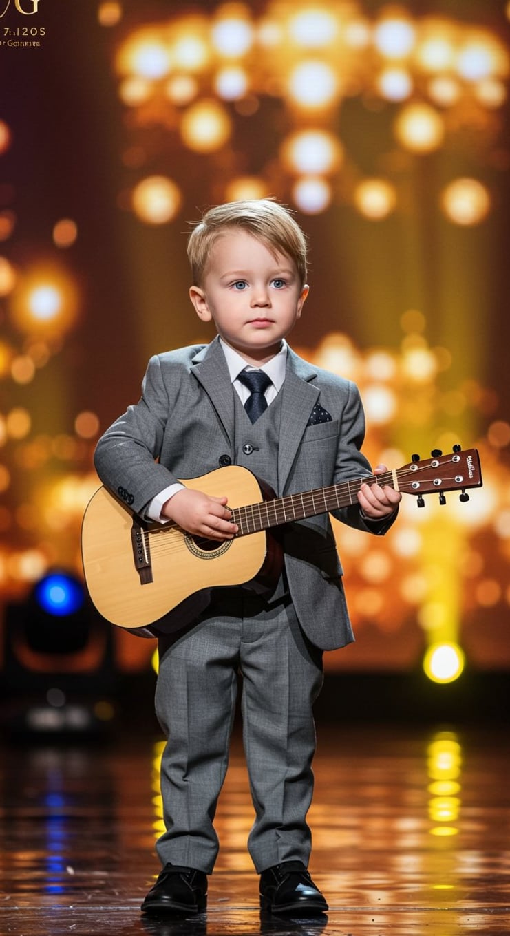 Eli walked out looking like he’d raided a country singer’s closet. Black button-up. Jeans stacked at the ankle. Cowboy boots that could have swallowed him whole. He didn’t wave at the crowd or flash a nervous smile. He just walked to the microphone, wrapped both small hands around the stand, and waited.